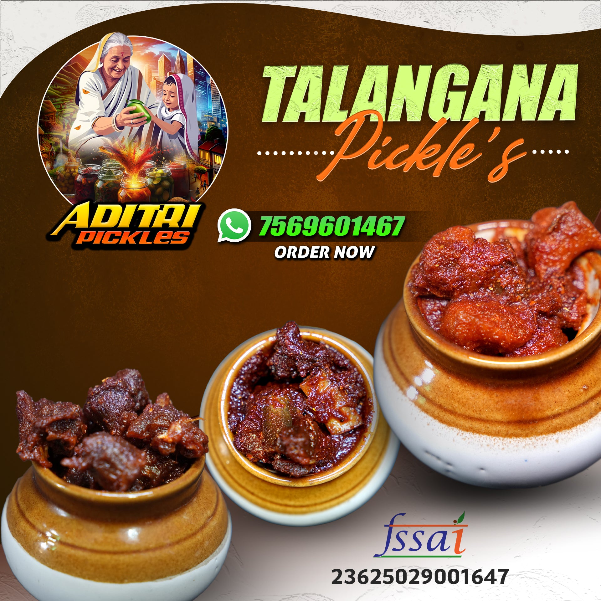 At aditri Pickles, we bring the bold and authentic flavors of traditional Telangana kitchens straight to your plate. Born out of a passion for preserving age-old recipes, our brand is rooted in love, purity, and the rich culinary heritage of Telangana, capturing the true taste of South India.